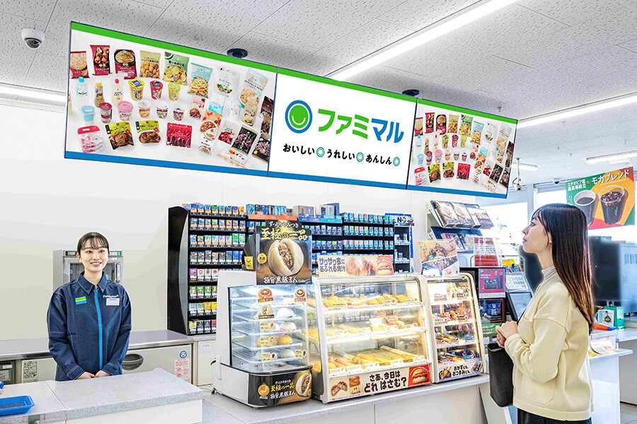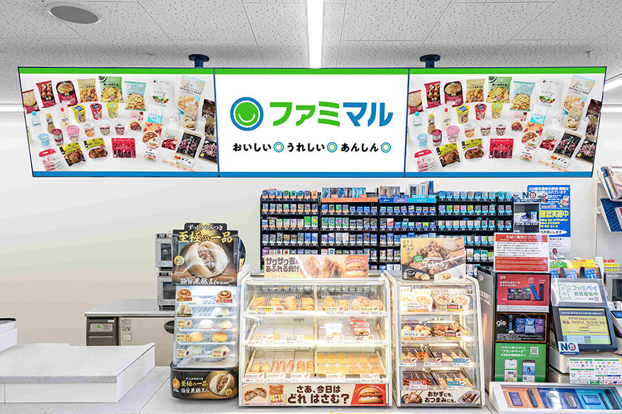 ファミリーマート店内に設置されている日本最大級のインストアリテールメディア